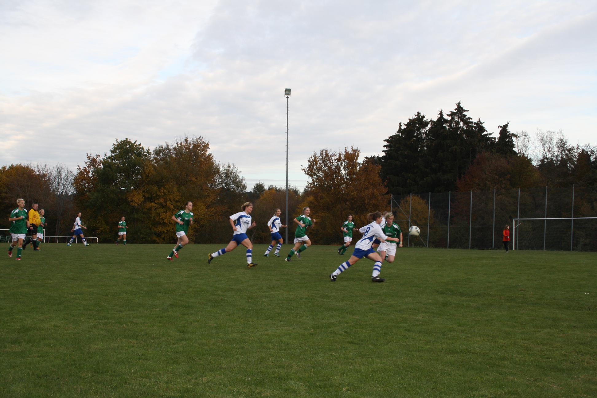 Wir setzten die Gastgeberinnen von beginn an unter druck und versuchten ein schnelles Tor zu erzielen. Bereits in der 9. Minute konnte Manuela Fleig nach Vorlage von Jasmin Hug das erste Tor für uns erzielen. Leider verpasste man das 0:2 in der 17. Minute durch einen Lattentreffer durch Jasmin Hug. Auf der Gegenseite konnte Lisa Müller mit einem wirklich schönen Heber, unhaltbar für unsere Torfrau, zum 1:1 ausgleichen. Doch wir wussten dass wir bis zu diesem Zeitpunkt die bessere Mannschaft waren und wollten uns dies nicht nehmen lassen. Direkt im Gegenzug erzielte Jenny Mauch das 1:2 und stellte damit wieder unsere Führung her. In der 30. Minute wehrte die Torfrau der Beffendorferinnen einen Schuss von Andrina Lägeler mit einer klasse Parade ab. Doch in der 32. Minute konnte die Torfrau einen Schuss von Jasmin Hug nur abprallen lassen und Manuela Fleig war auf dem Posten und schob zum 1:3 ein. Es ergaben sich auf beiden Seiten einige Torchancen, die jedoch immer abgefangen werden konnten. Unsere Damen hatten aber ein Chancenplus, konnten aber diese leider nicht im Netz unterbringen.